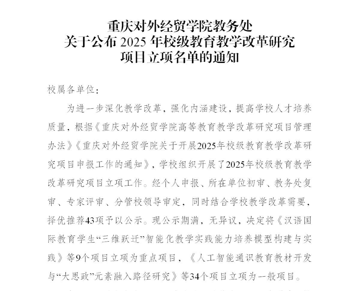 2025年校级教育教学改革研究项目申报中,我院