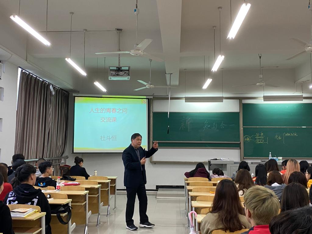 10月12日上午,重庆师范大学涉外商贸学院副校长杜斗恒为2020级播音主持艺术专业的学生进行了一场以“人生的青春之间”为主题的思政交流课。