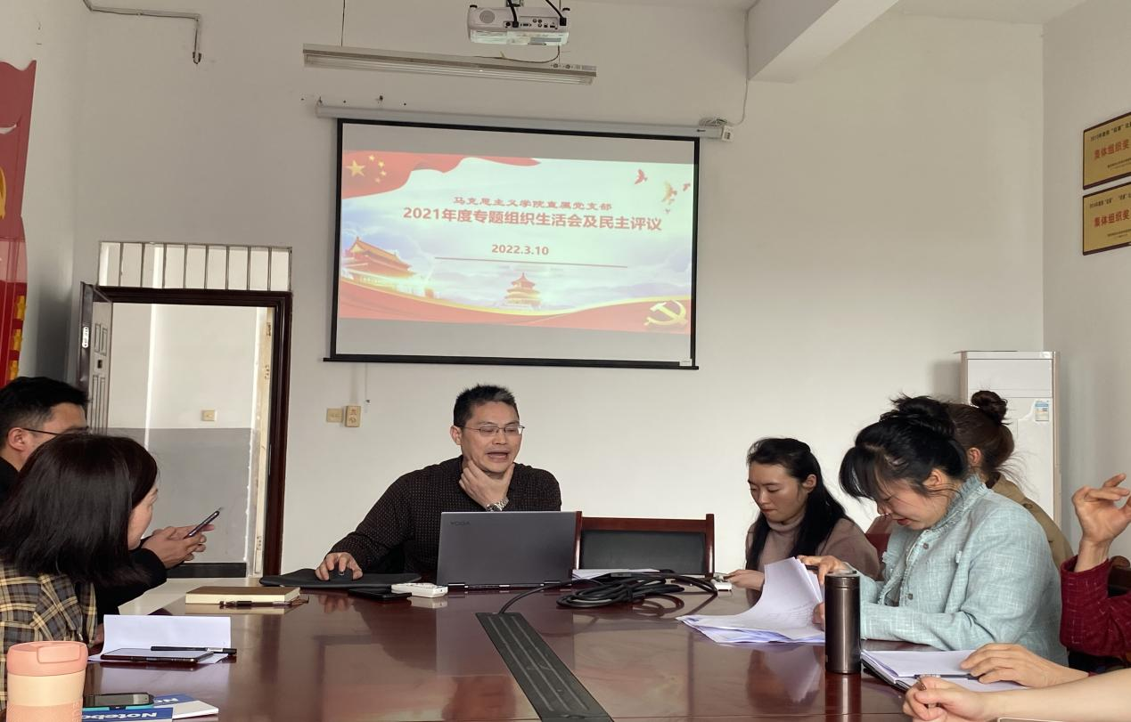 根据《中共yl23411永利(集团)有限公司官网委员会关于召开2021年度基层党组织生活会和开展民主评议党员的通知》要求,马克思主义学院党支部于2022年3月10日下午召开党支部会议,开展2021年度党员专题组织生活会和民主评议工作。全体党员参加会议,会议由党支部书记李亚军主持。