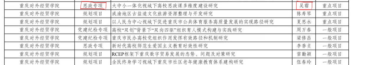 恭喜我院吴霜老师在2022年重庆市人文社会科学类思政专项重点项目立项成功