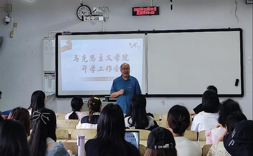 8月30日上午9点,马克思主义学院召开全体教职工开学工作会。会上,组织部梁修昌部长宣读了任免文件。何大海书记传达了校务会相关精神,并作了热情洋溢的讲话,既有充分的肯定,又与全体教职工“有言在先”。