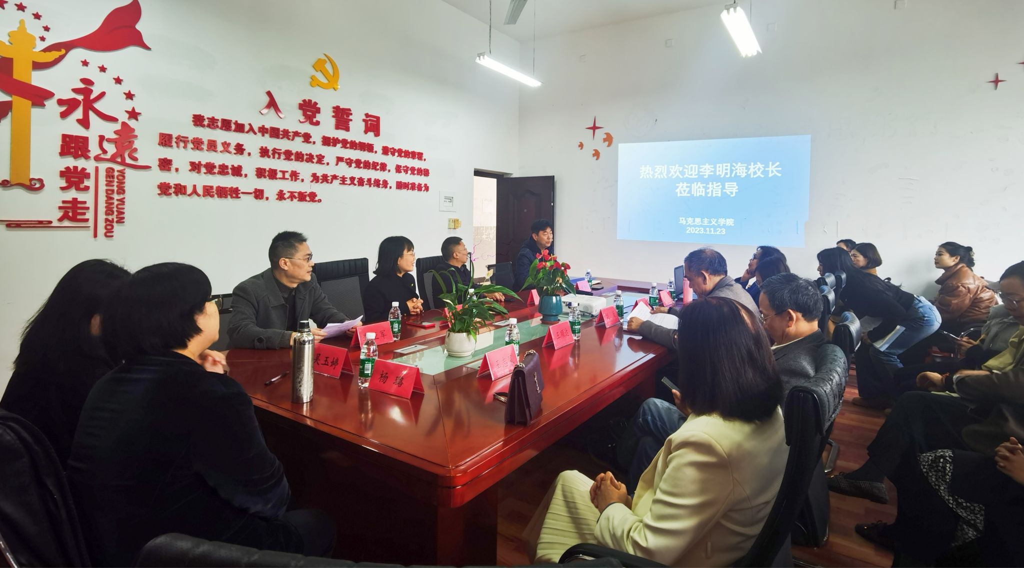 2023年11月23日下午,马克思主义学院召开全体教职工大会,正式宣布团委书记史丽涛同志兼任马克思主义学院副院长的通知。校长李明海和驻校理事、人事处处长刘卫民到会,学院副院长兼直属党支部书记李亚军和马克思主义学院全体教师参会见证。