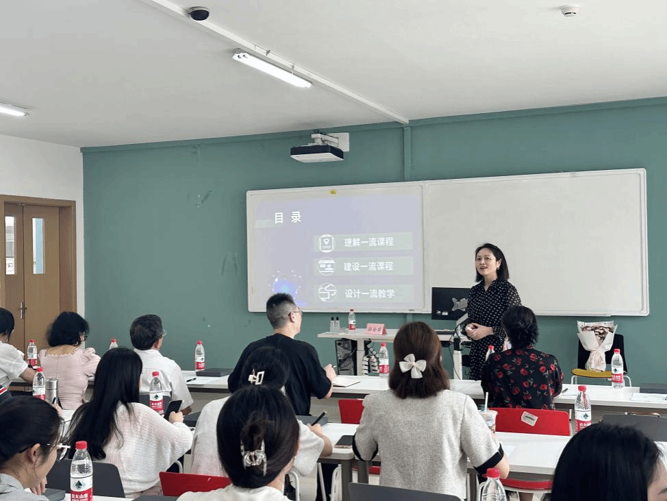 培训特邀首批国家级一流课程负责人、国家级一流课程评审专家、重庆交通大学孙渝莉教授讲解一流课程的申报标准和要求。结合往年成功申报案例,围绕一流课程的理解、建设、设计等三个方面,从一流课程评审标准及建设要求、教学设计优化、说课及课程实录、知识图谱的作用等问题作了经验分享。