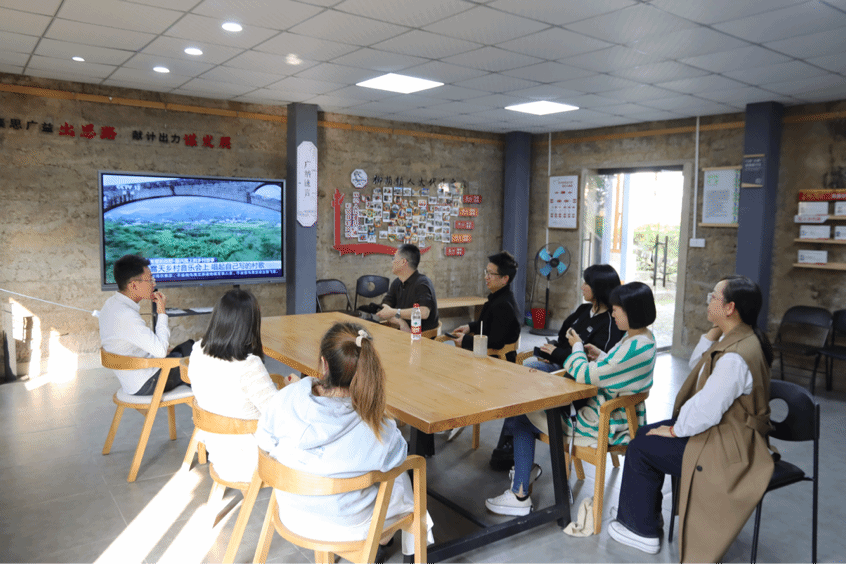 大家听取了东升村党总支书记江洪流介绍东升村乡村建设情况,随后参观东升村乡建展览馆,了解“乡建四杰”汇聚北碚探索乡村建设实践的历史行迹,聆听东升村民用乡音语调创作出的东升村歌《旭日东升》,参观东升村黄金香柳种植基地、北碚粮油产业示范基地,充分调研东升村发展成果。