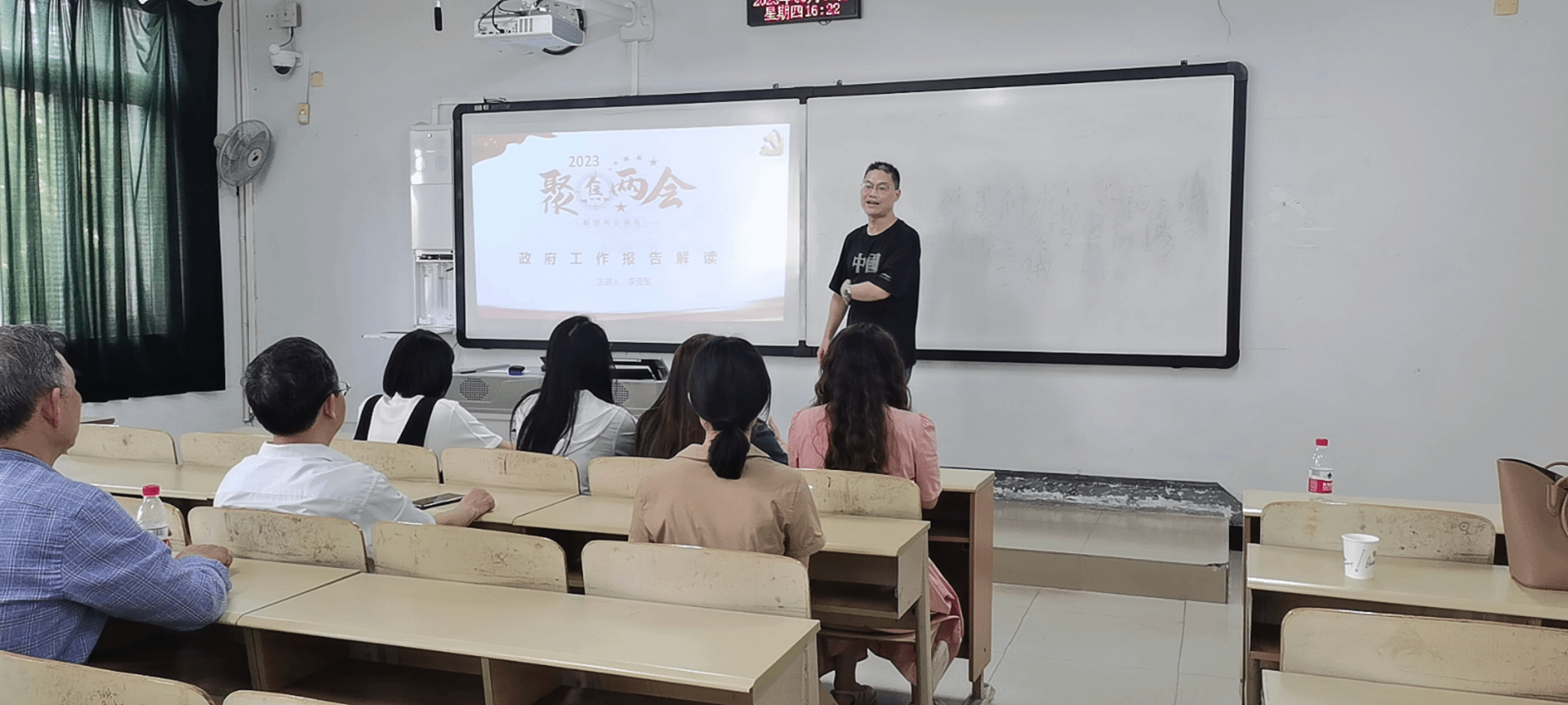 马克思主义学院直属党支部书记李亚军在微党课《聚焦两会-政府工作报告解读》中回顾了“两会知识科普”“全国两会常用词”“2023年全国两会”“今年两会新看点”“今年政府工作报告简版”这五个方面的内容。同时李亚军书记还要求全体党员在今后的学习生活中要把学习贯彻全国两会精神与学习贯彻深入学习贯彻习近平总书记在中央主题教育工作会议上的重要讲话精神紧密结合起来,并以时不我待的紧迫感、舍我其谁的责任感、拼搏奋进的使命感书写出最美的青春答卷。
