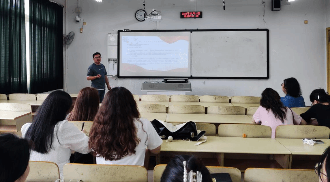 2023年5月18日下午,马克思主义学院直属党支部马克思主义学院直属党支部举行“‘喜迎二十大,建功新时代’人人讲好微党课”主题党日系列活动之微党课。此次微党课由马克思主义副院长牟勇主讲,全体党员教师参加,大家仔细聆听,相互学习、互相启发。