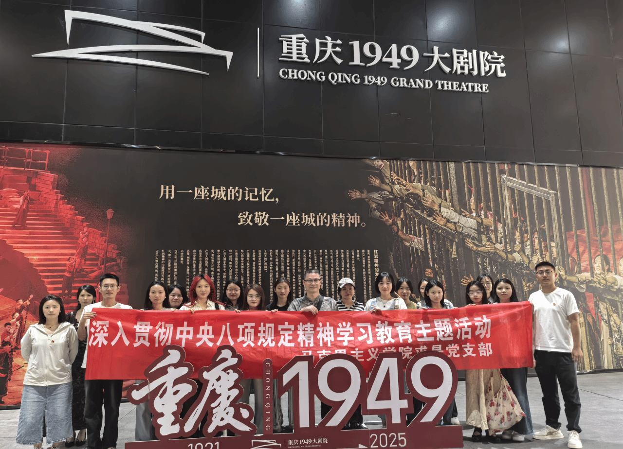 活动当天,支部的部分党员教师前往剧场观看了大型红色舞台剧《重庆1949》。该剧以重庆解放前夕为背景,通过沉浸式舞台艺术和震撼的声光效果,生动展现了革命先烈在生死考验中坚守信仰、严守纪律的英雄群像。剧中“狱中八条”的铮铮誓言、革命者宁死不屈的凛然气节,与中央八项规定倡导的“严于律己、清正廉洁”精神一脉相承。党员教师们被革命先辈“为党为民、克己奉公”的高尚品格深深触动,多次以热烈掌声致敬那段血与火锻造的忠诚。