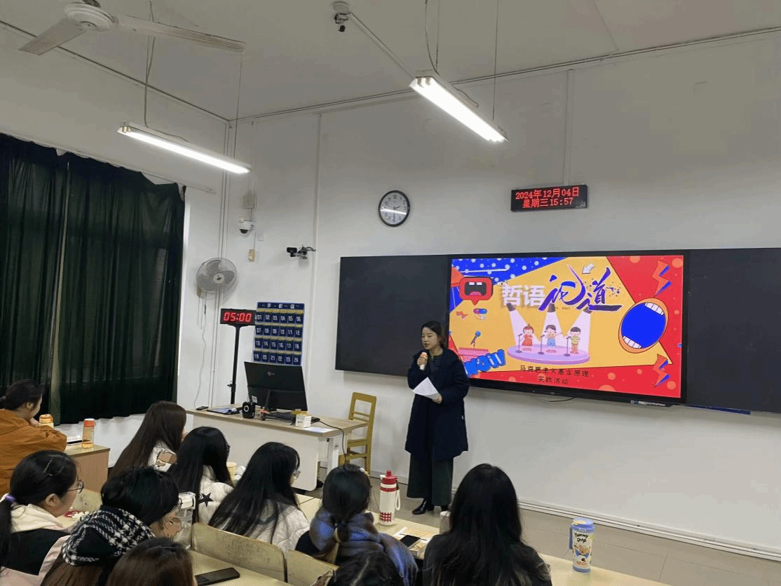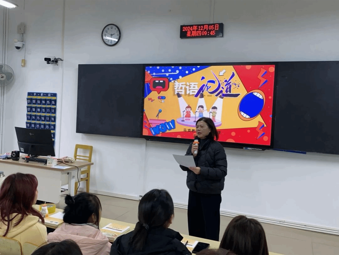 2024年12月3日至5日,马克思主义学院马原教研室主任尹艳老师在2022级教学班开展了教学实践活动——“哲语论道”(第四季)。尹艳老师打造的该教学实践活动品牌已走过四个年头,在本校师生中反响热烈,广受好评,越来越多的专业教师主动担任活动评委,马克思主义学院各教研室还专门研讨学习过这一实践教学形式。