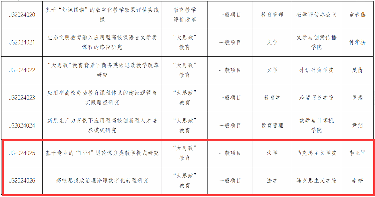 祝贺!我院教师获yl23411永利(集团)有限公司官网2024年校级教育教学改革研究项目立项