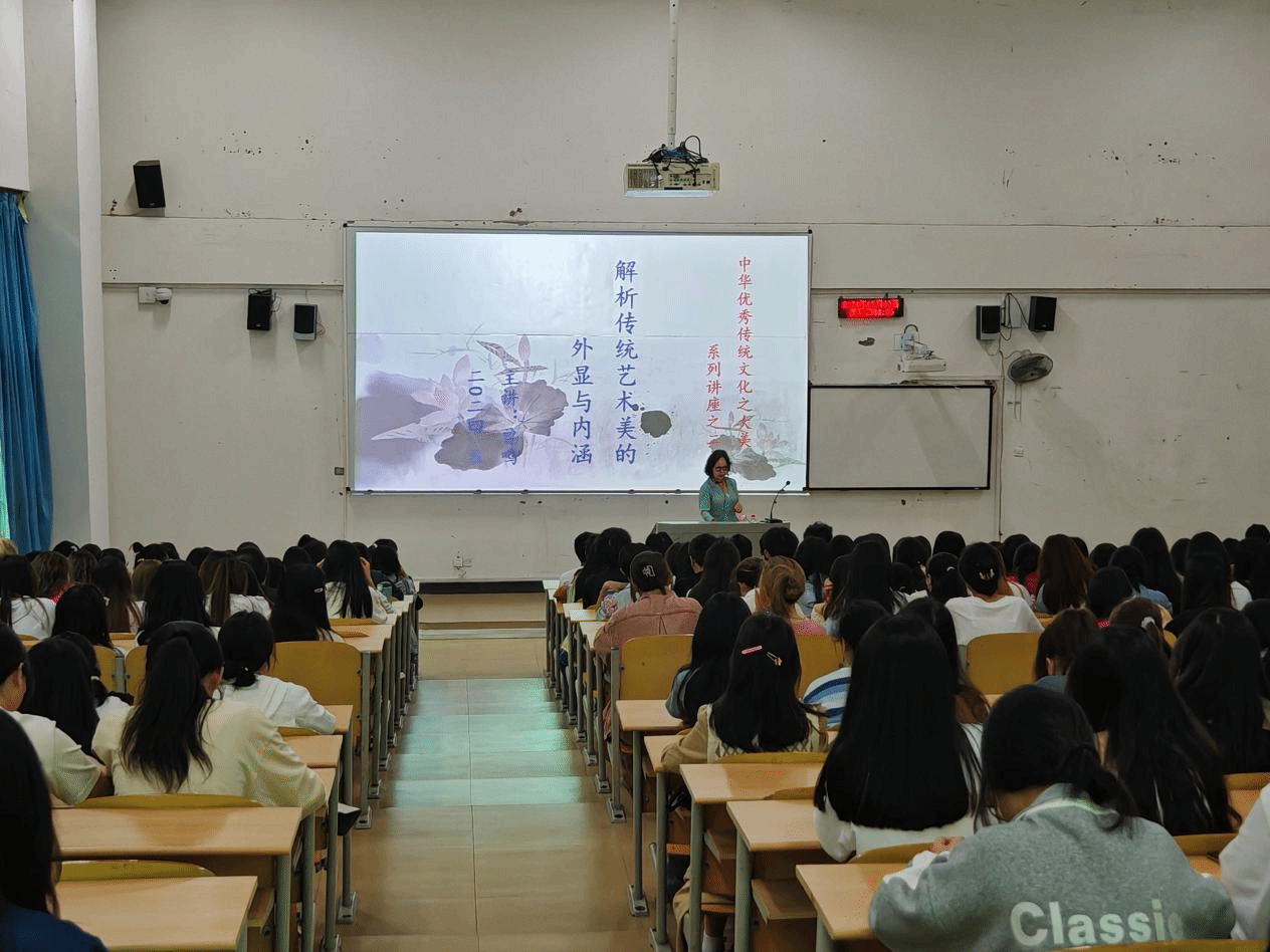 习近平总书记曾强调:“中华优秀传统文化是中华民族的精神命脉,是涵养社会主义核心价值观的重要源泉”。为进一步深入学习贯彻党的二十大精神,丰富校园文化建设,丰富大学生的精神世界,提高其人文素养,坚定文化自信,5月9日在A校区6116教室,开展了第四届读书文化节“中华优秀传统文化大美系列讲座之——解析传统艺术美的外显与内涵”首场专题学术讲座。本次讲座由图书馆和马克思主义学院于共同举办。