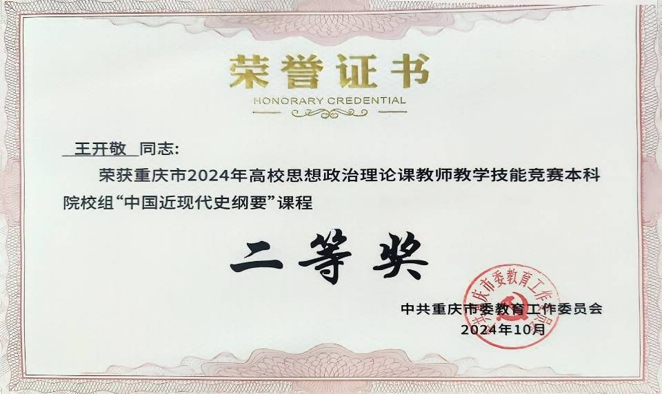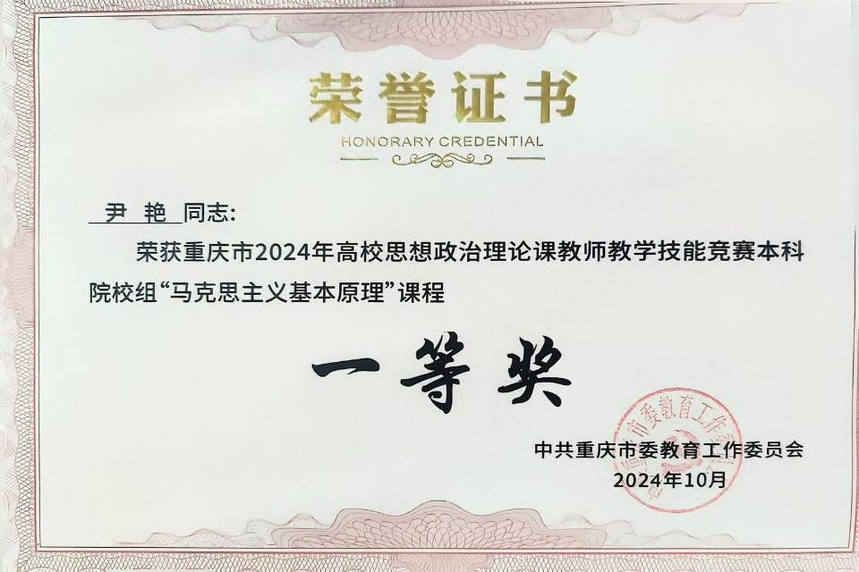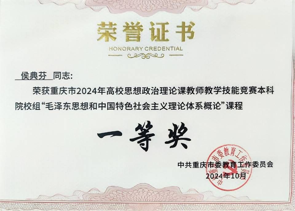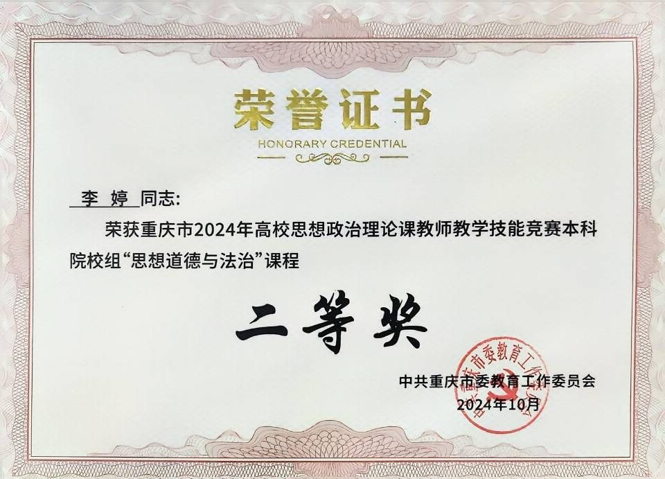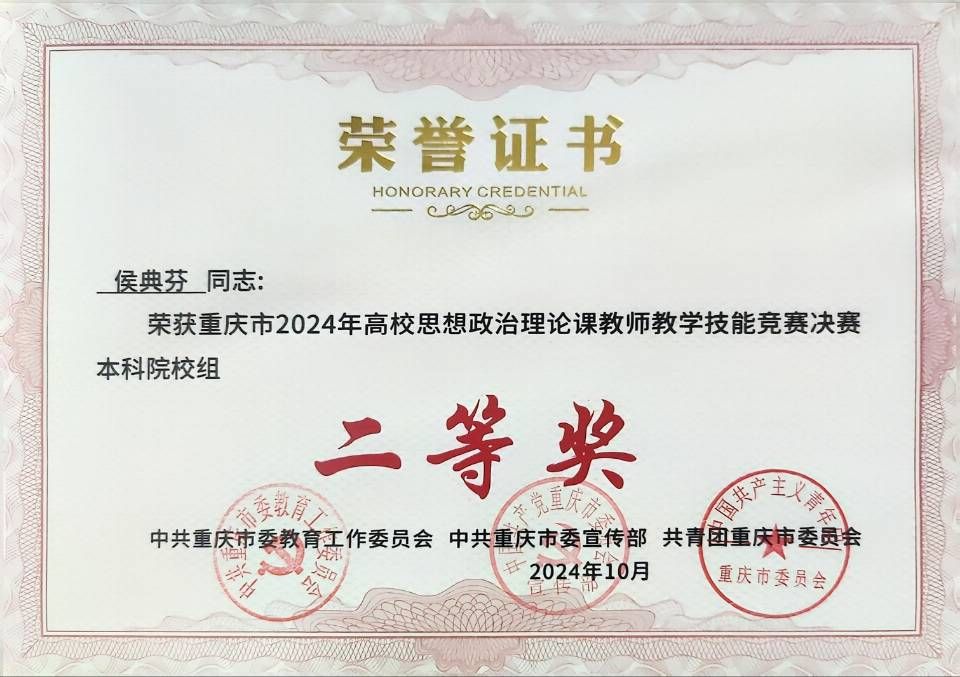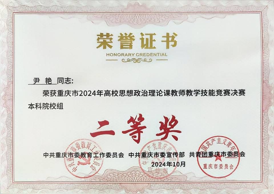 据悉,“重庆市2024年高校思政课教师教学技能竞赛”由市委教育工委、市委宣传部、团市委联合举办,高校思政课一线教师参赛,赛事安排初赛、复赛、决赛三个阶段,以此全面检验思政课改革创新成果。马克思主义学院从年初积极备战比赛,重点围绕思政课教师教学能力提升发力,选拔六名骨干教师代表学校参赛,并取得了理想成绩。