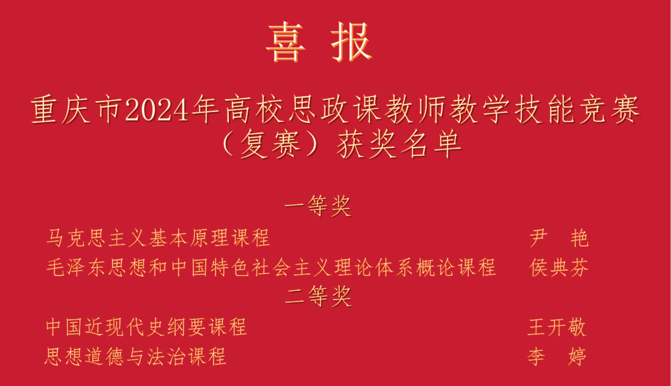 图为:重庆市2024年高校思政课教师教学技能竞赛(决赛)获奖名单