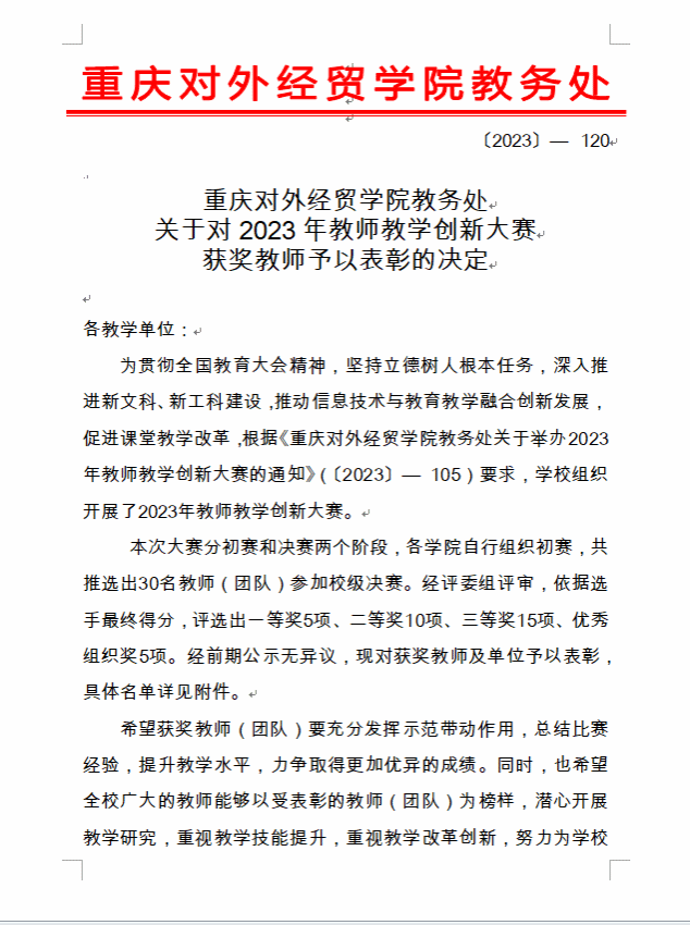 近日,我院王开敬、彭灵赟老师参加学校2023年教师教学创新大赛取得优异成绩,分别获得二等奖和三等奖,祝贺她们。希望全院教师能够以她们为榜样,潜心开展教学研究,重视教学技能与教学改革创新,赓续奋斗,再创佳绩。