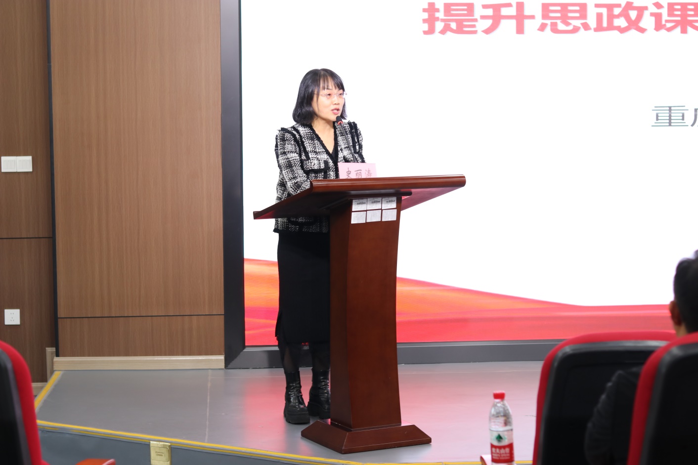2023年12月7日下午,学校B校区8105宣讲室听众满堂,一场精彩纷呈的报告会正在举行。全国高校思政课教学标兵、第二届全国高校思政课教学展示特等奖获得者、全国高校思政课影响力提名人物,重庆师范大学马克思主义学院兰桂萍教授作“提升思政课教学设计与实施实效性的思考”专题报告。报告会由马克思主义学院史丽涛副院长主持,200余名师生参加。